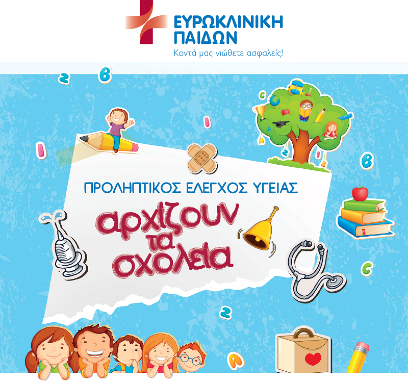 Η Ευρωκλινική Παίδων, με αφορμή την έναρξη της νέας σχολικής χρονιάς, αποδεικνύει για άλλη μία φορά ότι φροντίζει την υγεία των παιδιών και στηρίζει τους γονείς, υλοποιώντας το πρόγραμμα «Προληπτικός Έλεγχος Υγείας – Αρχίζουν τα σχολεία».