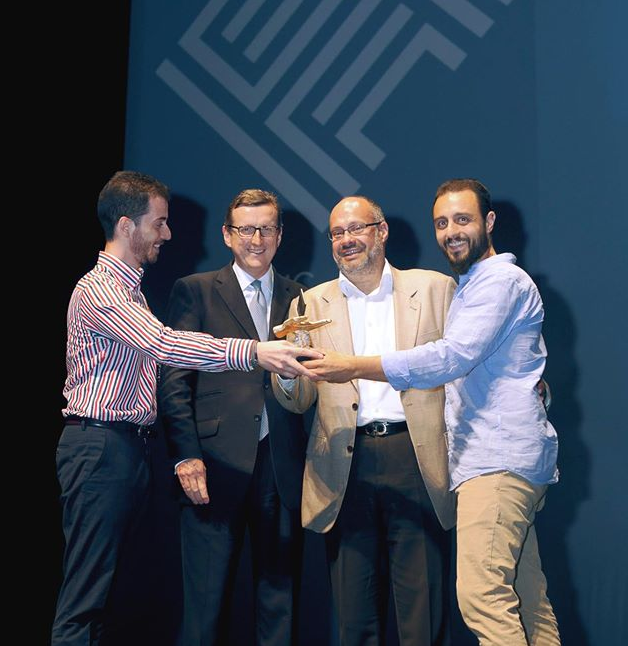 Το βραβείο Ελληνικό Βραβείο Επιχειρηματικότητας 2015 παρέδωσε ο GARETH ZUNDEL, HEAD OF COMMUNICATIONS της Libra Group στους αιτούντες: Νικόλαο Πίπα, Γιάννη Γεωργιάδη, Πέτρο Αγαζάνη.