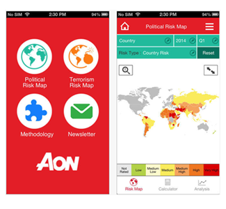 Ο Γιώργος Δαλιάνης, CEO της Aon Risk Solutions Ελλάδας δηλώνει σχετικά: «Οι επιχειρήσεις βρίσκονται αντιμέτωπες με απρόβλεπτες καταστάσεις και δυσκολίες επιβίωσης στην περίπλοκη διεθνή οικονομική σκηνή και χρειάζονται κατάλληλη οργάνωση και ενημέρωση για να τις διαχειριστούν. Εξελιγμένα εργαλεία, όπως ο διαδραστικός Χάρτης Κινδύνων της Aon Risk Solutions, προσφέρουν πολύτιμη πληροφόρηση στους πελάτες μας και τους βοηθούν να επισημάνουν τους πολιτικούς κινδύνους από τους οποίους απειλούνται και να υιοθετήσουν τις απαιτούμενες στρατηγικές».