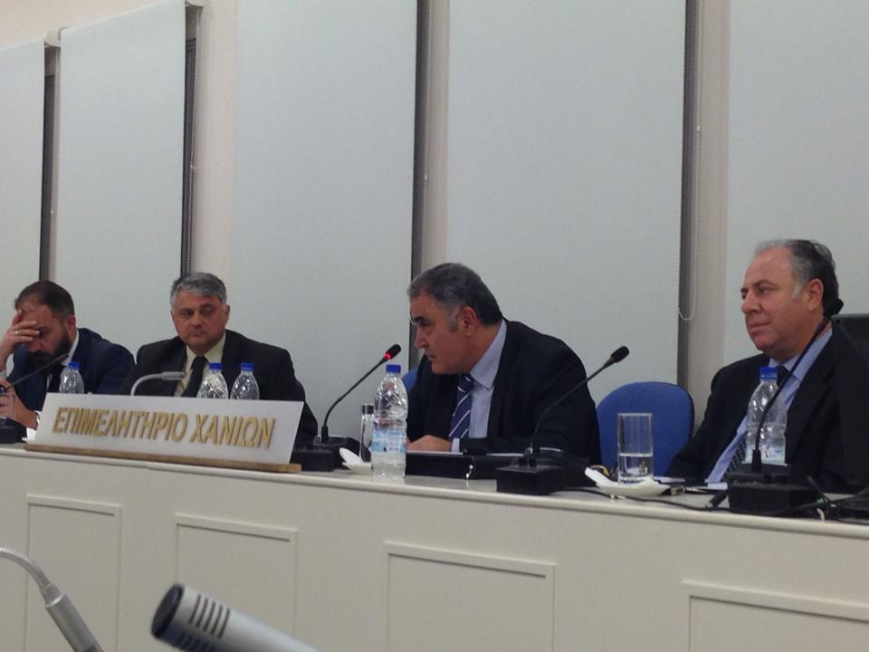 DSCF1610Με πολύ σημαντικά μηνύματα για το μέλλον του Ασφαλιστικού Διαμεσολαβητή αλλά και διευκρινήσεις σχετικά με τις πράξεις 30 & 31 ολοκληρώθηκε η εσπερίδα που πραγματοποιήθηκε στις 03.04.2014 στα Χανιά από το Επιμελητήριο Χανίων και το Σύνδεσμο Ασφαλιστικών Διαμεσολαβητών Ν.Χανίων (ΣΑΔΧ) με χορηγό επικοινωνίας το insurancedaily.gr. Ο πρωταγωνιστής αυτής της προσπάθειας, Πρόεδρος του Επαγγελματικού Επιμελητηρίου Αθηνών (Ε.Ε.Α.) κ. Ιωάννης Χατζηθεοδοσίου, μαζί με τον Πρόεδρο του Σ.Ε.Μ.Α. και μέλος της Ε.Α.Δ.Ε. κ. Γιώργο Καραβία μίλησαν για το μέλλον του Ασφαλιστικού Διαμεσολαβητή αλλά και τις επιπτώσεις στην αγορά από τις πράξεις του Διοικητή της ΤτΕ. Το παρόν έδωσε και ο πρόεδρος της Εθνικής Συνομοσπονδίας Ελληνικού Εμπορίου (Ε.Σ.Ε.Ε.) & του Επαγγελματικού και Βιομηχανικού Επιμελητηρίου Πειραιώς (Ε.Β.Ε.Π) κ. Βασίλειος Κορκίδης.