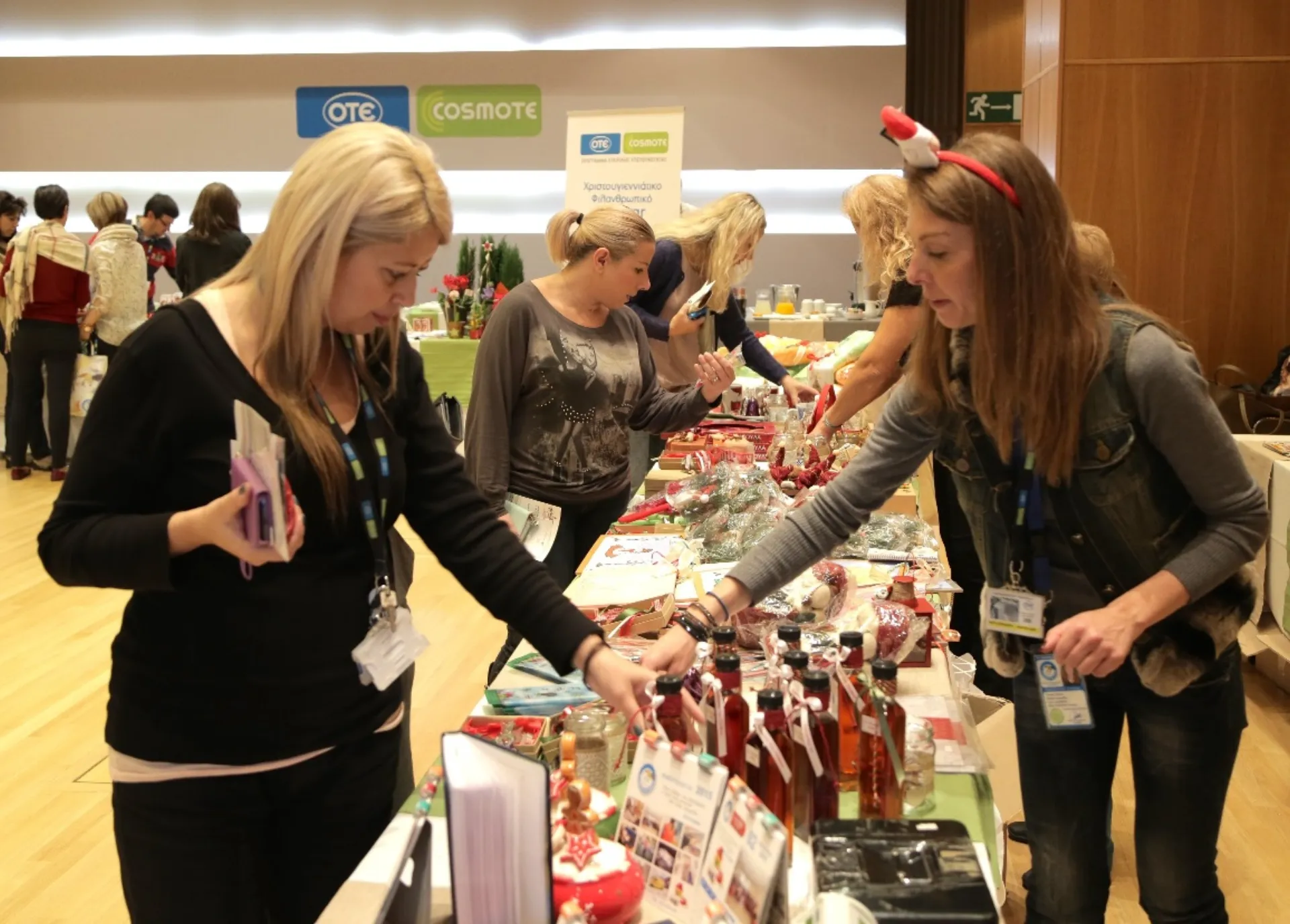 Για την ενίσχυση του έργου 12 φορέων που φροντίζουν παιδιά, συγκεντρώθηκαν περισσότερα από 17.500€,στο πλαίσιο της διοργάνωσης δύο Bazaar που φιλοξενήθηκαν στα κεντρικά γραφεία του Ομίλου ΟΤΕ. Οι εργαζόμενοι αγόρασαν τα Χριστουγεννιάτικα δώρα τους από Το Χαμόγελο του Παιδιού, την Εταιρεία Προστασίας Σπαστικών, την Ελληνική Εταιρία Προστασίας και Αποκαταστάσεως Αναπήρων Παίδων (Ε.Λ.Ε.Π.Α.Π), το Σύλλογο Γονιών Παιδιών με Νεοπλασματική Ασθένεια «Φλόγα», την Ανοιχτή Αγκαλιά των Φίλων Κοινωνικής Παιδιατρικής και Ιατρικής, Χατζηκυριάκειοτο Ίδρυμα Παιδικής Προστασίας και «Make-A-Wish» (Κάνε-Μια-Ευχή Ελλάδος). Νωρίτερα, στο πλαίσιο της εβδομάδας των εκδηλώσεων εργαζομένων για την εξυπηρέτηση πελατών, αγόρασαν δώρα από το Εργαστήρι Ειδικής Αγωγής “Μαργαρίτα”,τον Πανελλήνιο Σύλλογο Γονέων Κηδεμόνων και Φίλων Ατόμων με Προβλήματα όρασης και Πρόσθετες Αναπηρίες “Αμυμώνη”, το Ορφανοτροφείο Θηλέων «Η ΜΕΛΙΣΣΑ», την Αμυμώνη – Σύλλογο Θεσσαλονίκης και εργαστήριο Ειδικής Επαγγελματικής Εκπαίδευσης και Κατάρτισης Γενισέας.