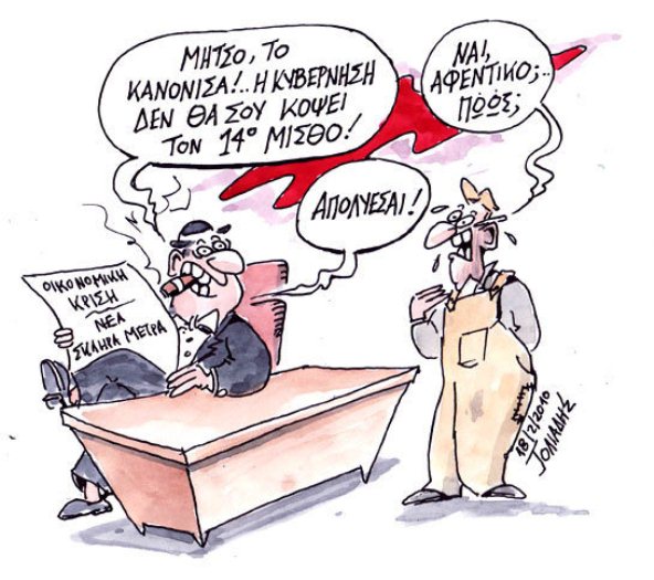 Ακολουθούμε τη… μόδα. Όταν χάνεται ένας πόλεμος ή γκρεμίζεται η οικονομία μιας χώρας, οι Πολίτες το ρίχνουν στον… αυτοσαρκασμό… Απολαύστε μερικά αστειάκια που είναι μεν, χαριτωμένα, αλλά και…θλιβερά… Θλιβερά, γιατί οι φίλοι μας οι Πολιτικοί, παρόλο που Πτώχευσαν τη χώρα… συνεχίζουν να Κυβερνούν με το ίδιο απόλυτα Κομματικοποιημένο Κράτος και συνεχίζουν να τσεπώνουν τα τελευταία δανεικά που παίρνουμε… Οι ρεμούλες, όπου και αν κοιτάξετε συνεχίζονται…ασταμάτητες… Ο Πρωθυπουργός… ποιος Πρωθυπουργός… Τα Καπετανάτα, δηλαδή, οι Υπουργοί του, τον έχουν…γραμμένο…
