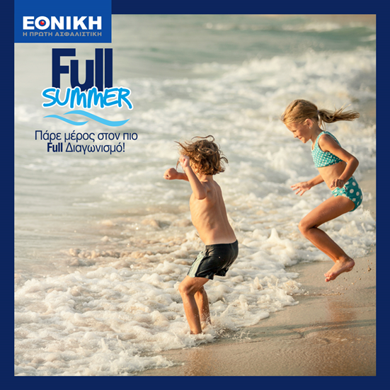 Η Εθνική Ασφαλιστική παρουσιάζει στους υπάρχοντες αλλά και στους εν δυνάμει πελάτες της το νέο πλήρες πρόγραμμα Υγείας Full και τους προσκαλεί να λάβουν μέρος στον καλοκαιρινό της διαγωνισμό.