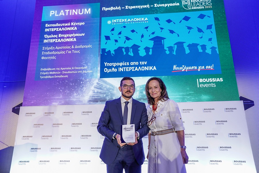 Η ανώτατη διάκριση «Platinum», αλλά και το βραβείο «Gold» στην κατηγορία «Επιβράβευση της Αριστείας & Οικονομική Στήριξη Μαθητών – Σπουδαστών στη Δημόσια Τριτοβάθμια Εκπαίδευση» απονεμήθηκαν στην ΙΝΤΕΡΣΑΛΟΝΙΚΑ, για τη χορήγηση υποτροφιών σε φοιτητές του Τμήματος Στατιστικής και Αναλογιστικών Χρηματοοικονομικών Μαθηματικών του Πανεπιστημίου Αιγαίου. Η εταιρία επενδύει ουσιαστικά στην εκπαιδευτική και επαγγελματική ανέλιξη των φοιτητών, μέσω υποτροφιών, δράσεων επαγγελματικού προσανατολισμού και συμμετοχής σε Ημέρες Καριέρας, επιβεβαιώνοντας την πολυδιάστατη προσέγγισή της στην ενίσχυση της αριστείας και την έμπρακτη υποστήριξη της νέας γενιάς, μέσω εκπαιδευτικών και κοινωνικών δράσεων.