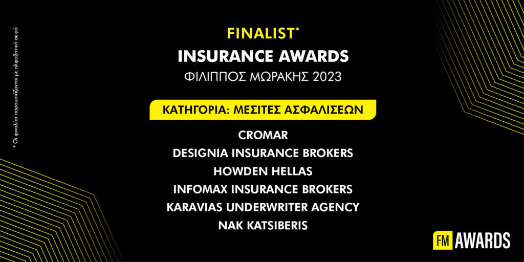 13 εταιρείες Μεσιτών & Πρακτόρων προκρίθηκαν στο τέταρτο και τελευταίο στάδιο της διαδικασίας ανάδειξης των κορυφαίων Ασφαλιστικών Διαμεσολαβητών ανά κατηγορία βράβευσης των Insurance Awards “Φίλιππος Μωράκης” 2023.