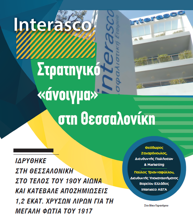 Στη «γενέτειρά» της με συγκεκριμένο σχέδιο ανοίγεται η Interasco έχοντας στη φαρέτρα της νέους συνεργάτες και προϊόντα ειδικά σχεδιασμένα για την τοπική αγορά. Η Εταιρεία που «γεννήθηκε» στη Θεσσαλονίκη και συνέβαλε στην αποκατάσταση της κοινωνικής και οικονομικής ζωής μετά τη φωτιά του 1917, ξεκινά νέα δυναμική προσπάθεια αξιοποιώντας τους ανθρώπους της και τη σχέση που έχει δομήσει μαζί τους, την ιστορία της, την υγιή οικονομική της ανάπτυξη αλλά και τα τεχνολογικά εξελιγμένα συστήματα υποστήριξης συνεργατών και ασφαλισμένων που έχει υιοθετήσει. Για τις προοπτικές της Interasco στη Θεσσαλονίκη μιλούν στο ΑΜ οι κ. Θ. Ζαχαρόπουλος και Π. Τριανταφύλλου.