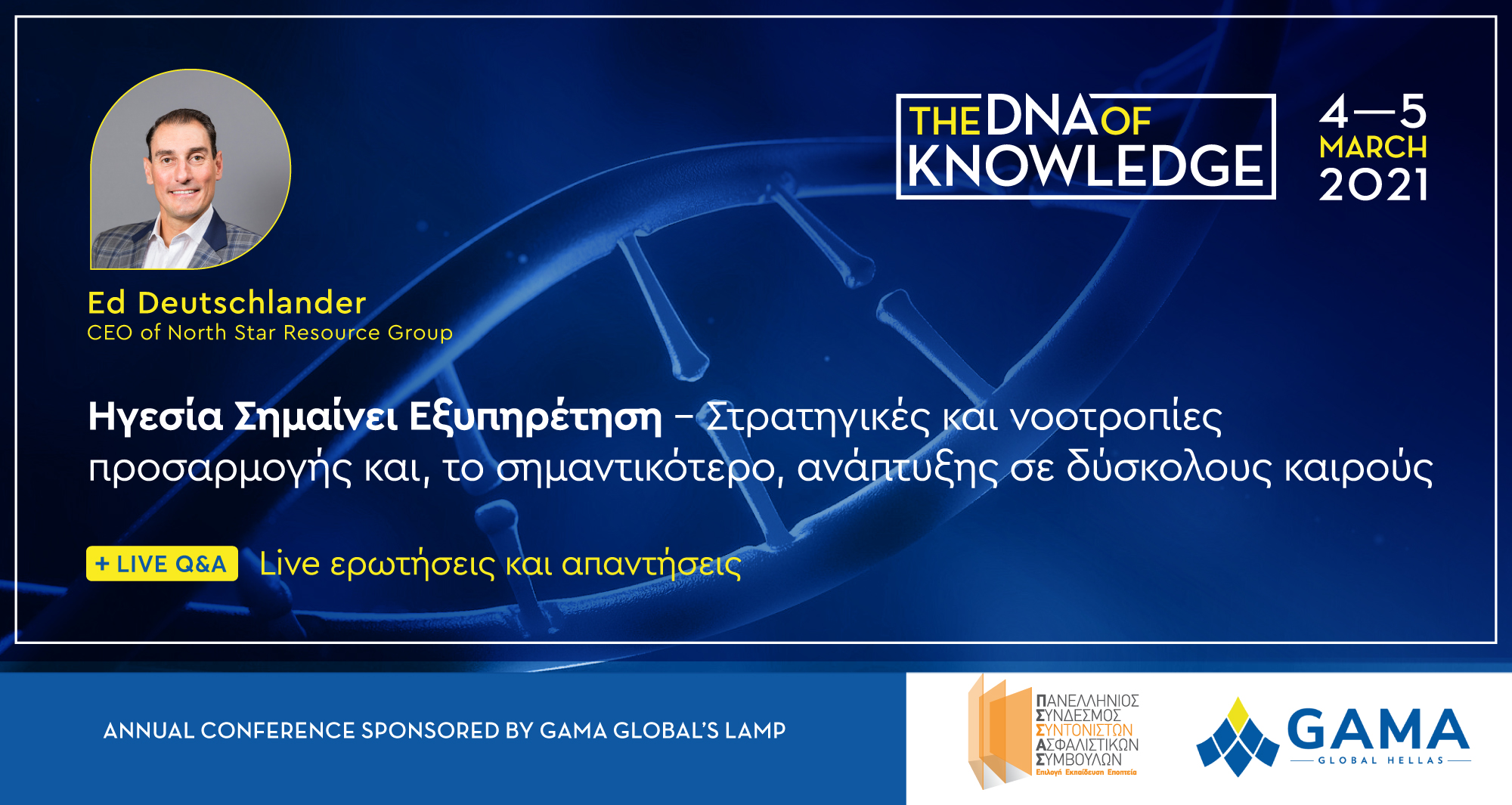 Κορυφαίοι Ομιλητές από την Παγκόσμια Ασφαλιστική Βιομηχανία θα βρεθούν live στο διήμερο εκπαιδευτικό συνέδριο «The DNA of KNOWLEDGE», την Πέμπτη 4 & Παρασκευή 5 Μαρτίου 2021.