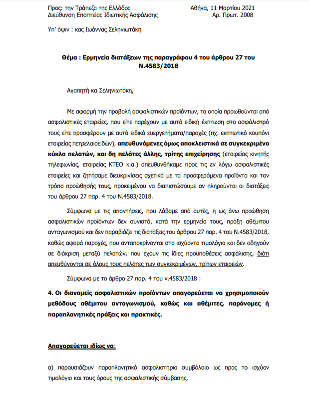 Δεν έχει υπάρξει απάντηση σχετική από την εποπτική αρχή.