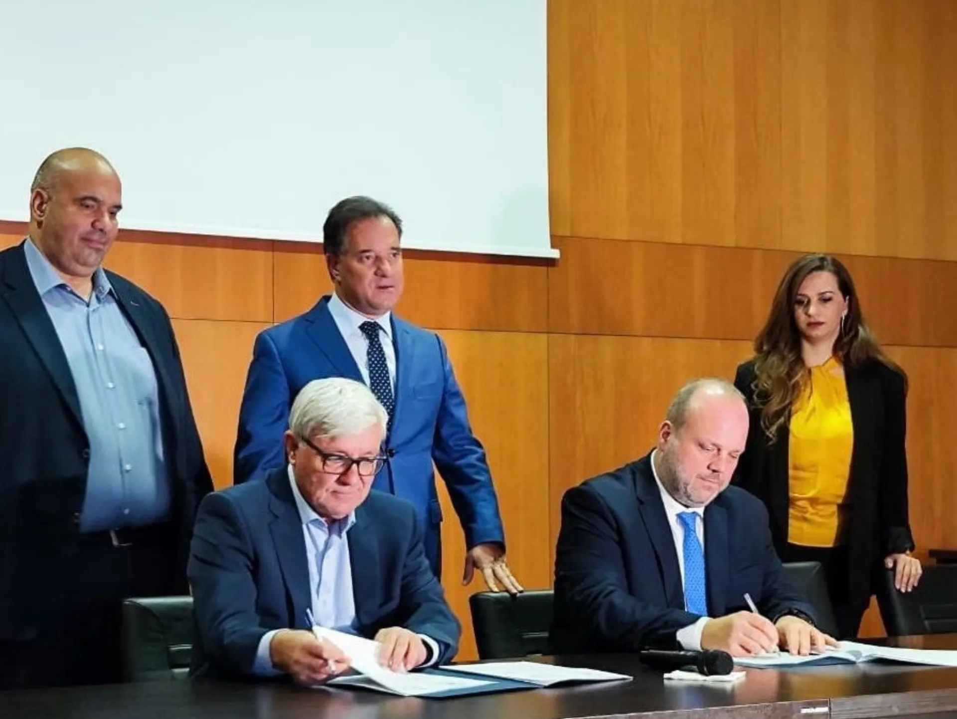 Ο Υπουργός Εργασίας και Κοινωνικής Ασφάλισης κ. Άδωνις Γεωργιάδης παρέστη σήμερα, Τετάρτη 6 Δεκεμβρίου 2023, στην υπογραφή σύμβασης για την ολοκλήρωση της κατασκευής του οικισμού 80 εργατικών κατοικιών στην Κυρακαλή Γρεβενών μεταξύ του Διοικητή της ΔΥΠΑ κ. Σπύρου Πρωτοψάλτη και εκπροσώπου της αναδόχου εργολαβικής εταιρίας.
