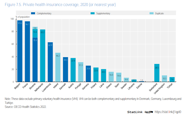 Μεγάλες διαφοροποιήσεις στα κράτη μέλη της ΕΕ καταγράφονται και στο πεδίο της ιδιωτικής ασφάλισης με την Ελλάδα να βρίσκεται στο 16%, όταν στο Βέλγιο και την Γαλλία το αντίστοιχο ποσοστό ξεπερνάει το 95%, στην Ιρλανδία είναι 46,2%, στην Αυστρία 37,9% και στη Γερμανία ανέρχεται στο 25,8%.