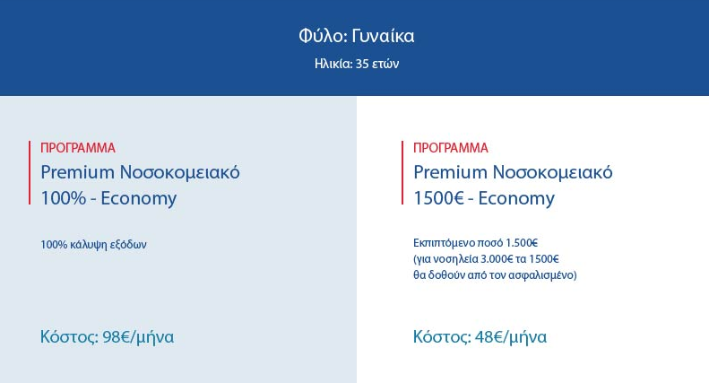 Ενδεικτικά αναφέρουμε, ότι στο προγράμματα υγείας Premium Νοσοκομειακό 1500€, η απαλλαγή μειώνεται κατά 50%, δηλαδή από 1.500€ σε μόνο 750€.