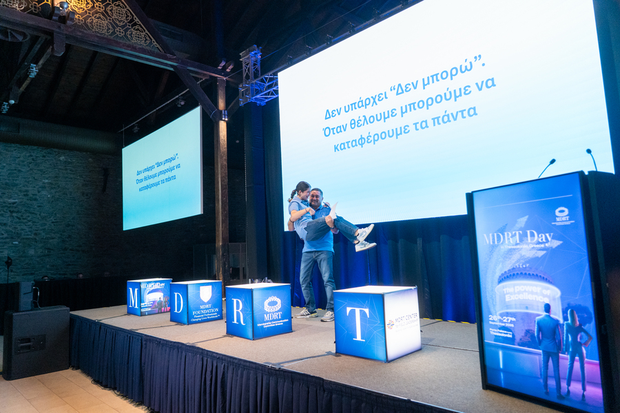 Η Δώρα Αποστολοπούλου, Athletics Champion, Greece, και ο Ηλίας Αποστολόπουλος, MDRT Member, COT MDRT Member, Greece, συγκίνησαν με την ομιλία τους “σπάζοντας το φράγμα του «δεν μπορώ»”. Μίλησαν για τη δύναμη της υπέρβασης και την αξία της επιμονής, αφήνοντας το πιο δυνατό συναισθηματικό αποτύπωμα στο κοινό και κλείνοντας με ένα παρατεταμένο χειροκρότημα όρθιων θεατών.