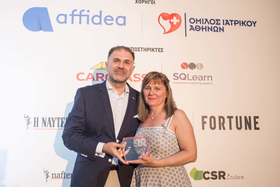 Ο κ. Κ. Καλημέρης απονέμει βραβείο στην κα Κατερίνα Γραμμέλη για την Marsh ΕΠΕ