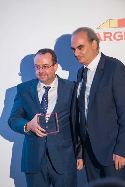 Ο κ. Κοτσαρίνης παραλάμβανει το βραβείο από τον κ. Γ. Παπουτσά εκ μέρους της Π. Σιάρκου