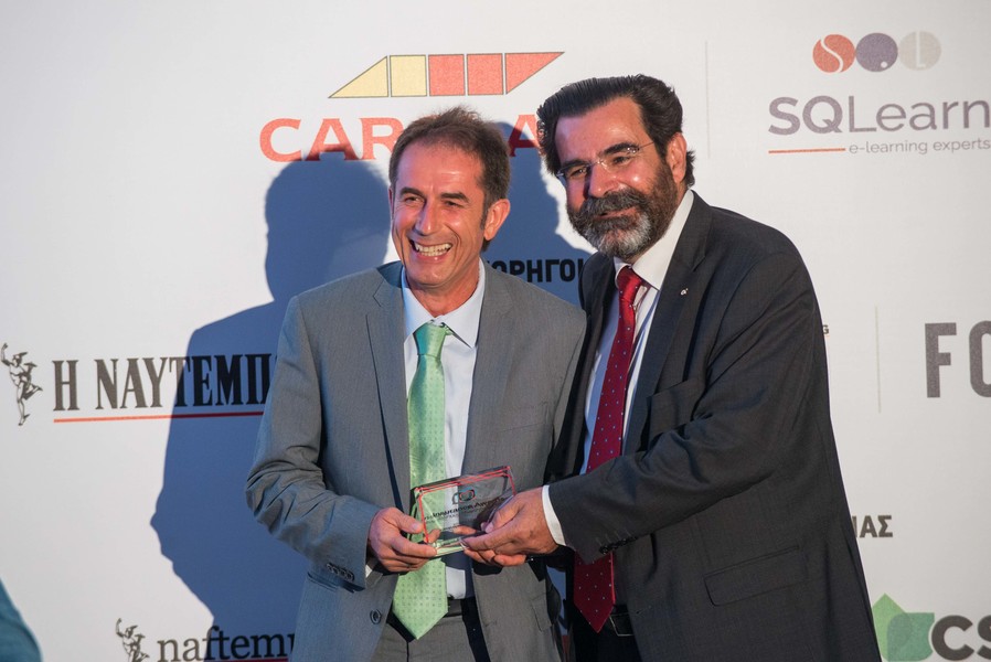 Ο κ. Μ. Μωράκης απονέμει το βραβείο στην εταιρεία APEIRON