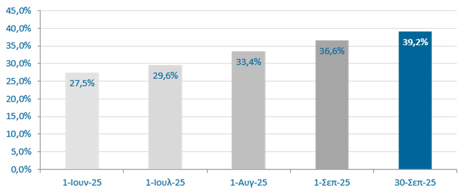 Από την 01.06.2025, που σύμφωνα με τη νομοθεσία κατέστη υποχρεωτική η ασφάλιση οχημάτων έναντι φυσικών καταστροφών και συγκεκριμένα για τους κινδύνους της δασικής πυρκαγιάς και της πλημμύρας, ο αριθμός των οχημάτων που έχει τις εν λογω καλύψεις έχει αυξηθεί, φτάνοντας από το 27,5% στο 39,2%.