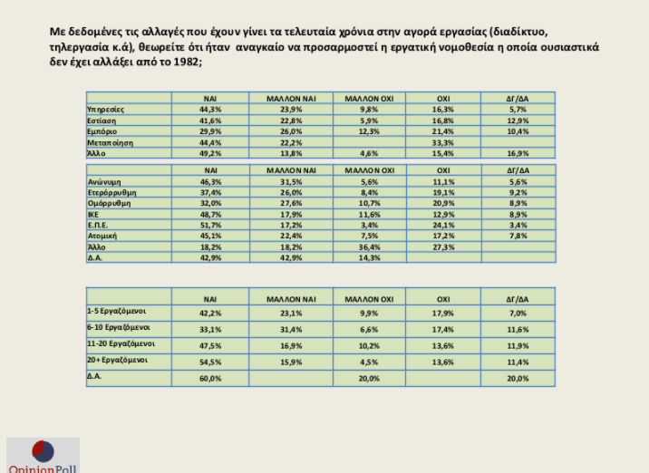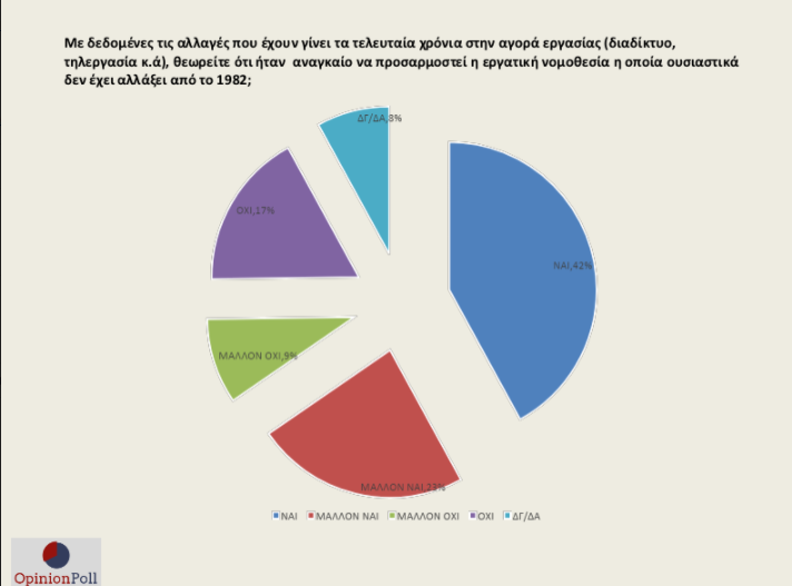 – Το 51% θεωρεί ότι καταργείται το 8ωρο, ενώ αντίθετη άποψη έχει το 45%.