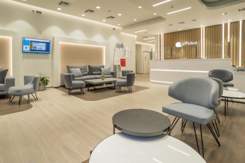 Η ιδιαιτερότητα με το συγκεκριμένο κέντρο είναι ότι σε περίπτωση αυξημένης κίνησης και ειδικά αυτή την περίοδο που η συνάθροιση σε κλειστούς χώρους είναι ανάλογη των τετραγωνικών, το συγκεκριμένο διαγνωστικό έχει και δεύτερη αίθουσα αναμονής με είσοδο από Τιμολέοντος Βάσσου για να μην περιμένει ο κόσμος στο δρόμο (ειδικά σε περίπτωση βροχής). Στο ισόγειο στο συγκεκριμένο διαγνωστικό βρίσκονται οι αιμοληψίες, όπως επίσης και τα τμήματα αξονικής & μαγνητικής τομογραφίας. Στον πρώτο όροφο το εργαστήριο είναι εξοπλισμένο με τμήμα υπερηχοτομογραφίας, καρδιολογικό τμήμα, τμήμα μέτρησης οστικής πυκνότητας, τμήμα ψηφιακής ακτινογραφίας, τμήμα μαστού, τομοσύνθεση (3D τεχνολογία απεικόνισης μαστού), ψηφιακό ορθοπαντογράφο (πανοραμική δοντιών – ούτε εγώ ήξερα ότι λεγόταν έτσι) και το βιοπαθολογικό εργαστήριο. Ένα πλήρες εξοπλισμένο διαγνωστικό κέντρο στην καρδιά της πόλης το οποίο μάλιστα πέρα από όλα τα παραπάνω που παρουσίασα και για τα οποία μπορείτε να βρείτε περισσότερες πληροφορίες εδώ, έχει και τη φήμη ως ένα από τα reference centers σε ευρωπαϊκό επίπεδο σε ό,τι αφορά τους υπερήχους. Μια πολύ συγκεκριμένη ειδίκευση για την οποία υπεύθυνος είναι ο ιατρός και επιστημονικός διευθυντής της Affidea Δρ. Νικόλαος Λιάσης ο οποίος διατηρεί και το γραφείο του εκεί.