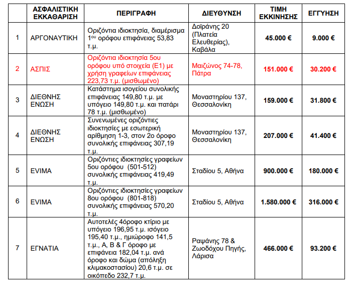 Κεφάλαιο Ασφάλισης Ευθύνης από Ατυχήματα Αυτοκινήτων» στο οποίο ανήκει το δικαίωμα διοίκησης και διάθεσης σύμφωνα με το Νόμο, διενεργούν πλειοδοτικό διαγωνισμό με κλειστές προσφορές για την πώληση των εξής ακινήτων:
