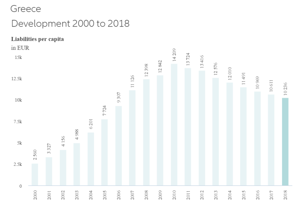 Στην Ελλάδα το 2018 οι πολίτες έχασαν το 7,2% των μικτών χρηματοοικονομικών περιουσιακών τους στοιχείων, ενώ από το 2007 έως το 2018 τα μικτά χρηματοοικονομικά περιουσιακά στοιχεία στην Ελλάδα έχουν μειωθεί σχεδόν κατά 30%