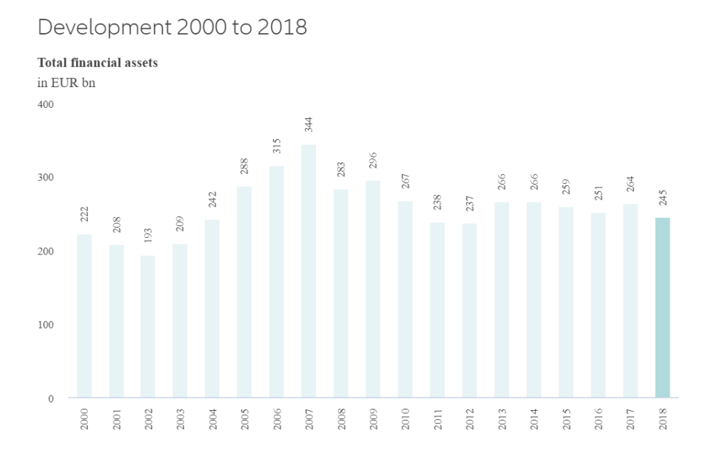 Ακόμα και στην κορύφωση της χρηματοοικονομικής κρίσης το 2008, δεν είχε καταγραφεί ταυτόχρονα μείωση των περιουσιακών στοιχείων διεθνώς. Το 2018 οι αποταμιευτές βρέθηκαν σε δύσκολη θέση διεθνώς: Από τη μία πλευρά η κλιμάκωση των εμπορικών διαφορών μεταξύ των ΗΠΑ και της Κίνας, το ατελείωτο σίριαλ του Brexit και οι αυξανόμενες γεωπολιτικές εντάσεις και από την άλλη, οι όλο και πιο δυσμενείς νομισματικές συνθήκες και η ανακοίνωση της ομαλοποίησης της νομισματικής πολιτικής. Οι χρηματιστηριακές αγορές αντέδρασαν ανάλογα: Οι τιμές των μετοχών μειώθηκαν παγκοσμίως κατά 12% το 2018. Αυτό είχε άμεσο αντίκτυπο στην αύξηση των περιουσιακών στοιχείων. Σε διεθνές επίπεδο, τα μικτά χρηματοοικονομικά περιουσιακά στοιχεία των νοικοκυριών μειώθηκαν κατά 0,1% και παρέμειναν περίπου στα 172,5 τρισεκατομμύρια ευρώ.