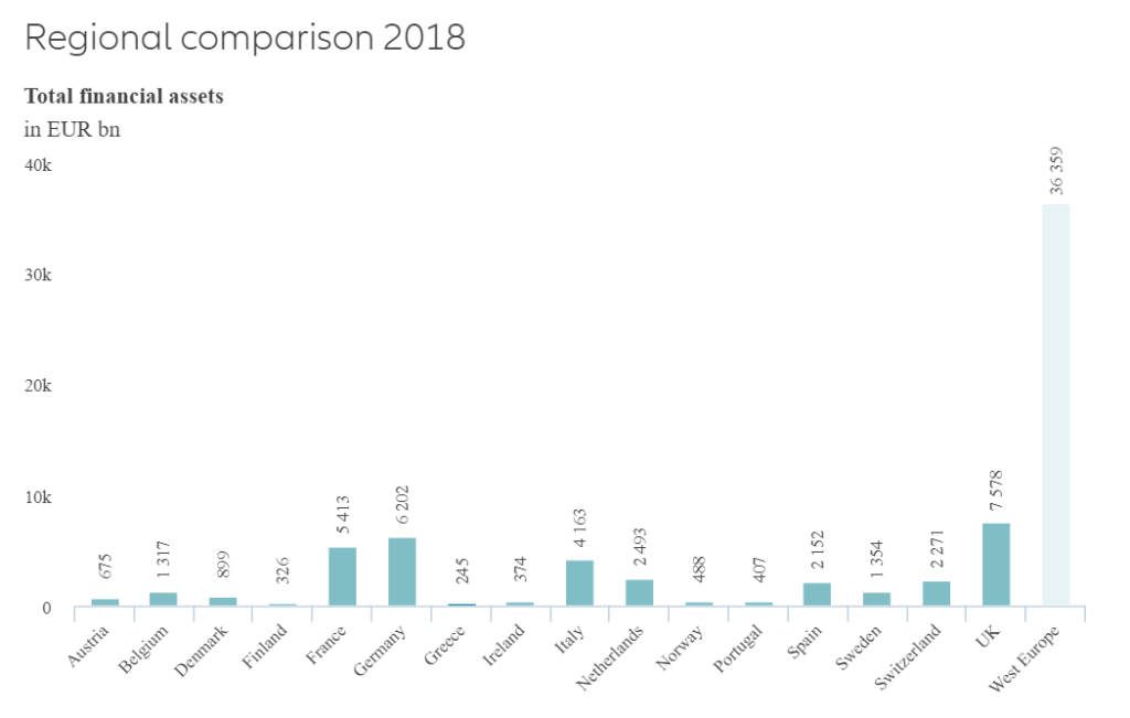 Τα μικτά χρηματοοικονομικά περιουσιακά στοιχεία των ελληνικών νοικοκυριών μειώθηκαν κατά 7,2% το 2018, σημειώνοντας τη μεγαλύτερη μείωση από το 2011. Στη Δυτική Ευρώπη, μόνο τα ιταλικά νοικοκυριά υπέστησαν αντίστοιχη μείωση το περασμένο έτος (-4,8%). Σε σύγκριση με τα υψηλότερα προ-κρίσης επίπεδα του 2007, τα μικτά χρηματοοικονομικά περιουσιακά στοιχεία στην Ελλάδα έχουν μειωθεί σχεδόν κατά 30%. Στην Ιταλία, εξακολουθούν να βρίσκονται 1% κάτω από την ανώτατη τιμή τους, αλλά όλες οι άλλες Ευρωπαϊκές χώρες έχουν ήδη ανακτήσει τις απώλειες που καταγράφηκαν κατά τη διάρκεια της χρηματοοικονομικής κρίσης και της κρίσης του ευρώ.