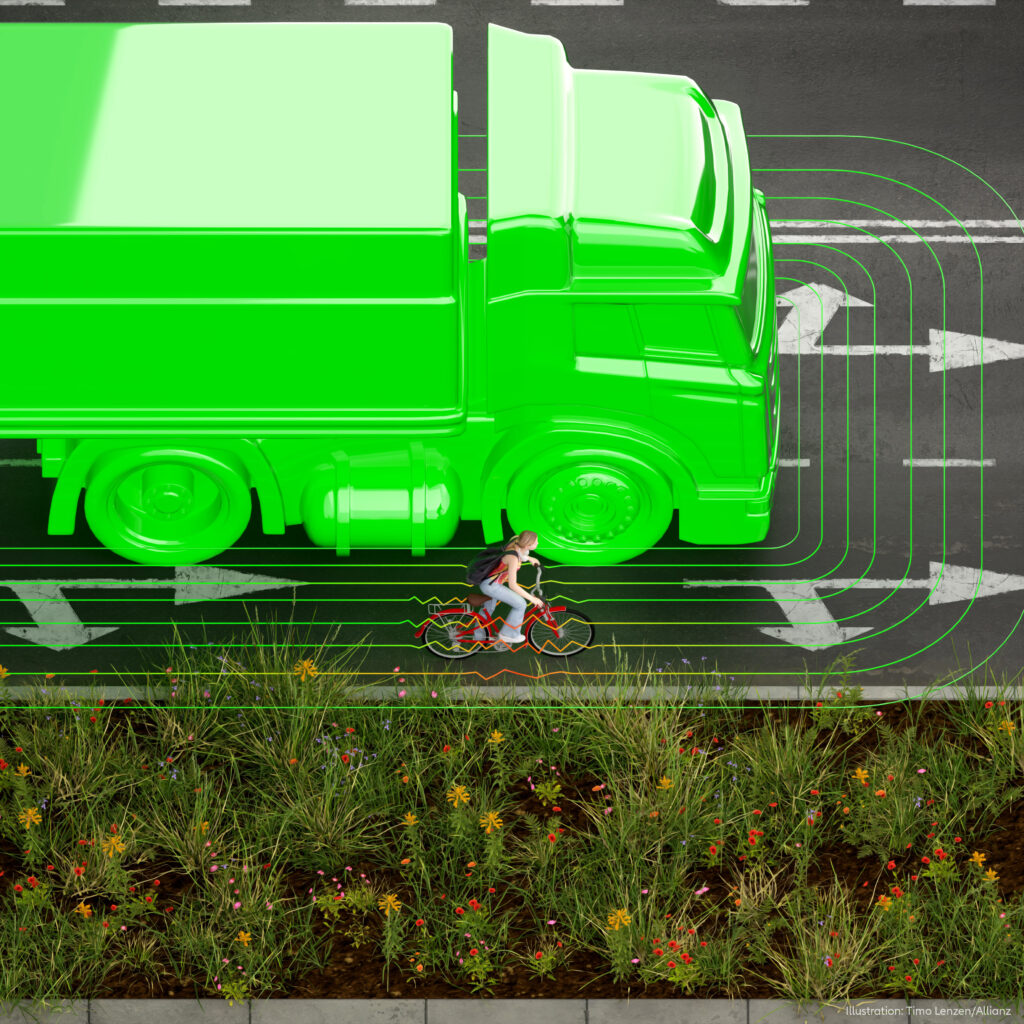 Τουλάχιστον το 1/3 των τροχαίων οχημάτων ανάμεσα σε φορτηγά και τους λεγόμενους πιο ευπαθείς χρήστες του δρόμου θα μπορούσε να αποφευχθεί. Σημαντική τροχοπέδη ως προς αυτό φαίνεται ότι αποτελεί το γεγονός πως τα φορτηγά δεν έχουν τα ίδια συστήματα ασφαλείας με τα επιβατηγά οχήματα. Το 2022 το 70% των τροχαίων ατυχημάτων με θάνατο στην Ευρώπη και το 80% στη Γερμανία αφορούσαν τους πιο “εκτεθειμένους” χρήστες του δρόμου. Παρά τις αυστηρότερες απαιτήσεις και τα προηγμένα συστήματα υποστήριξης οδηγού που εισάγονται με το GSR2 για τα οχήματα, το πλαίσιο πρέπει να βελτιωθεί για τα φορτηγά καθώς όπως τονίζει ο Klaus-Peter Roehler, μέλος του Δ.Σ. της Allianz SE “αν και ορισμένες προειδοποιητικές λειτουργίες των συστημάτων υποστήριξης οδηγού είναι πλέον υποχρεωτικές σε πρόσφατα ταξινομημένα φορτηγά, δεν επαρκούν για την αξιόπιστη πρόληψη συγκρούσεων με ποδηλάτες και πεζούς σε τυφλά σημεία. Τα συστήματα θα πρέπει να μπορούν να αναγνωρίσουν τους χρήστες του δρόμου στο τυφλό σημείο και να ενεργοποιήσουν αμέσως το φρενάρισμα έκτακτης ανάγκης».