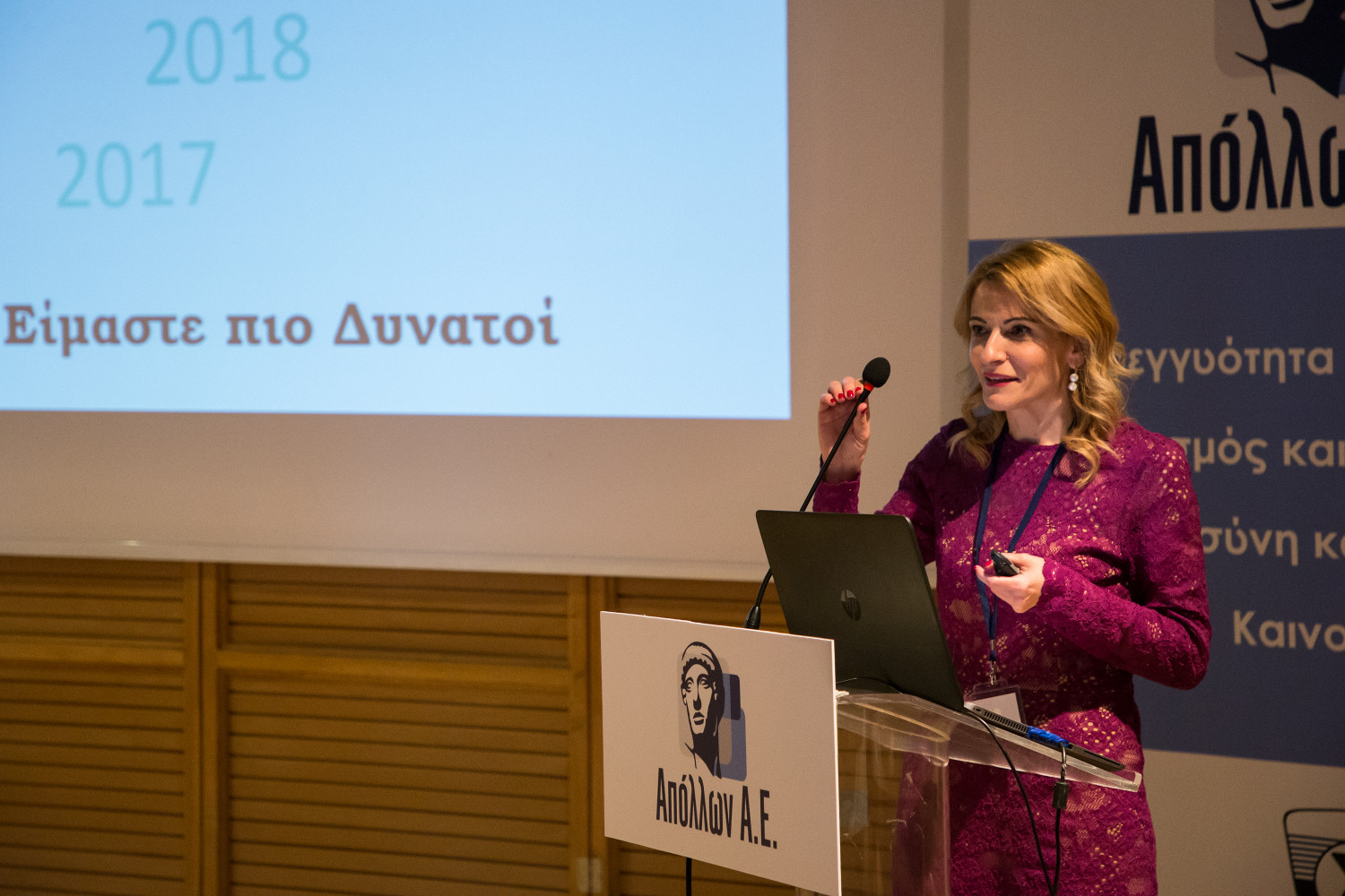 Κάνοντας απολογισμό της χρονιάς που πέρασε η ομάδα της Απόλλων με τους κ.κ. Γ. Βαρόπουλο, Αναπληρωτή Γενικό Διευθυντή , Σ. Σικοτάκη, Γενική Διευθύντρια, Γ. Κακαβελάκη, επικεφαλής του δικτύου, Ν. Κανδύλη, επικεφαλής Non motor, Κ. Καρούση, Επικεφαλής του Business Development Life & Health και Μ. Παναγιωτοπούλου, προϊσταμένη στον κλάδο Motor ανέφερε ότι το 2018: