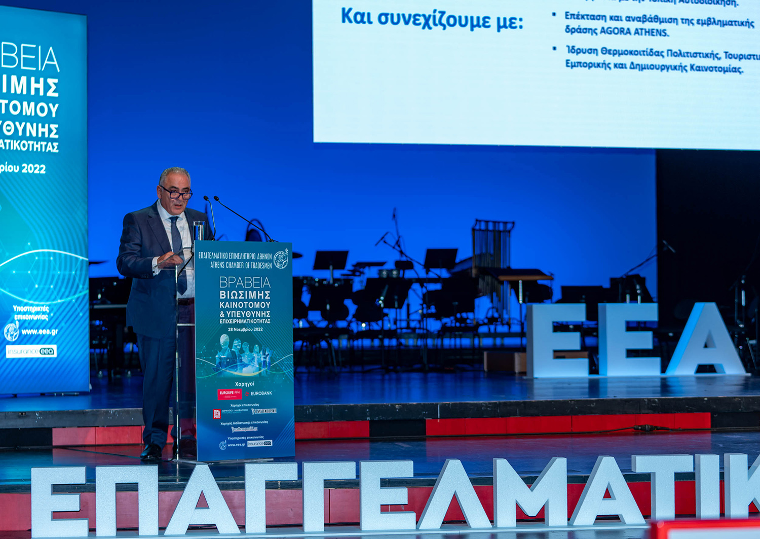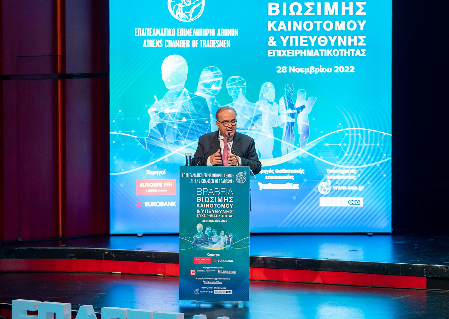 Σε μία λαμπρή εκδήλωση, με καλλιτεχνικό χρώμα αλλά και συγκινησιακές στιγμές, απονεμήθηκαν τα βραβεία «Βιώσιμης – Καινοτόμου & Υπεύθυνης Επιχειρηματικότητας» του Επαγγελματικού Επιμελητηρίου Αθηνών, τη Δευτέρα 28 Νοεμβρίου 2022, στο Κέντρο Πολιτισμού Ίδρυμα «Σταύρος Νιάρχος» στην Αίθουσα Σταύρος Νιάρχος ΕΛΣ.