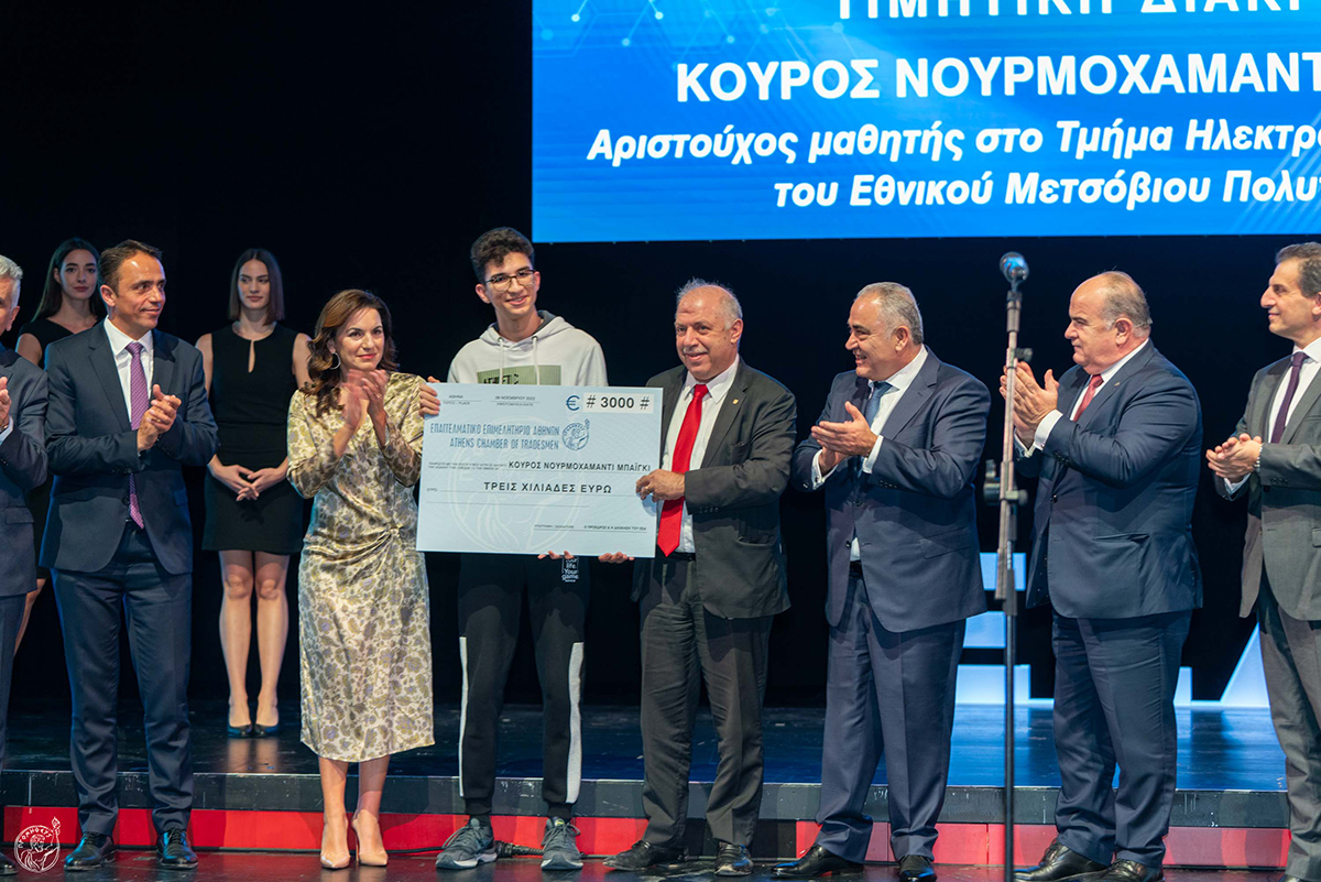 • Στον Ιρανό μαθητή Κουρός Νουρμοχαμαντί Μπαϊγκί, που αρίστευσε στις Πανελλήνιες και πέρασε στο Τμήμα Ηλεκτρολόγων Μηχανικών του Εθνικού Μετσόβιου Πολυτεχνείου, για την τεράστια θέληση και την προσπάθεια να πραγματοποιήσει το όνειρο του για σπουδές.