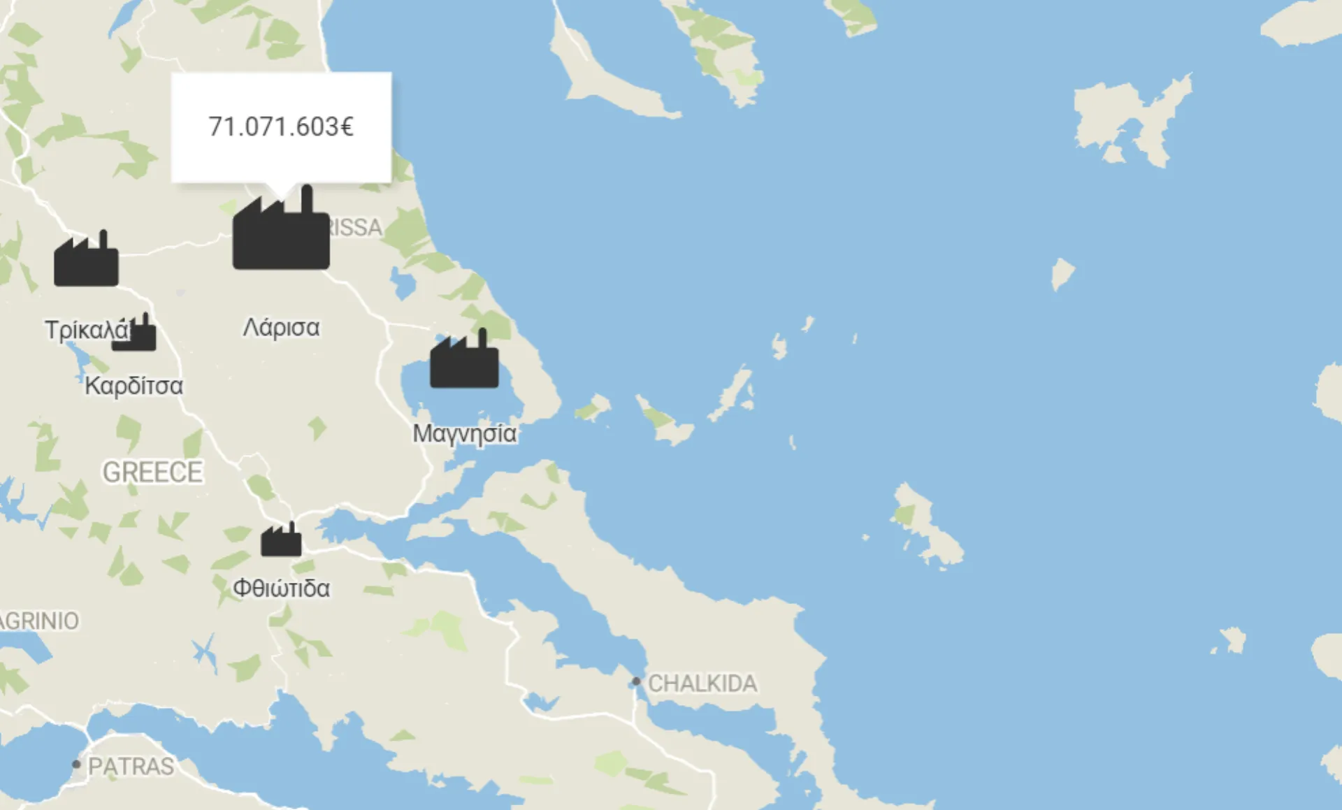 Στους βιομηχανικούς κινδύνους το 43,8% των αποζημιώσεων είναι στη Λάρισα, όπου 194 βιομηχανίες αποζημιώνονται με 71 εκατ. ευρώ, εν συνεχεία ακολουθεί η Μαγνησία με το 19,5% της συνολικής αποζημίωσης, τα Τρίκαλα με 18,5%, η Καρδίτσα με 27,1 εκατ. ευρώ. Στην Αττική οι ζημιές είναι μικρές όσον αφορά την αποζημίωση ανέρχονται σε 143.230 ευρώ.