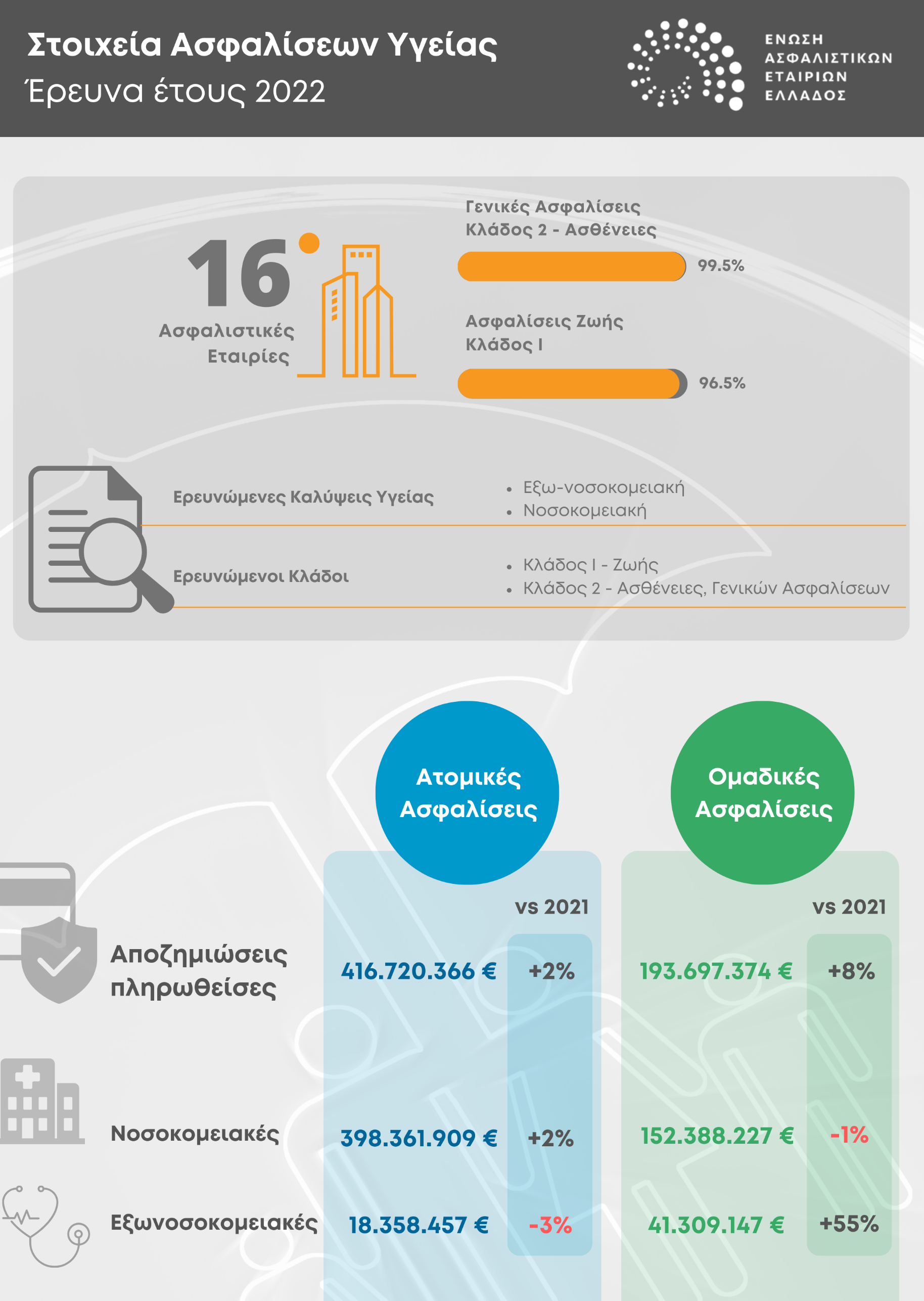 Το 2022 συνολικά 1.139.598 άνθρωποι είχαν ιδιωτική ασφάλιση υγείας, με 921.627 ασφαλιστήρια και έγιναν 114.718 ακυρώσεις συμβολαίων.