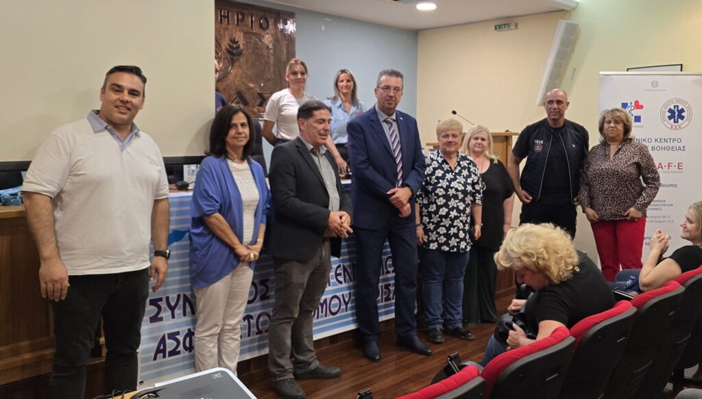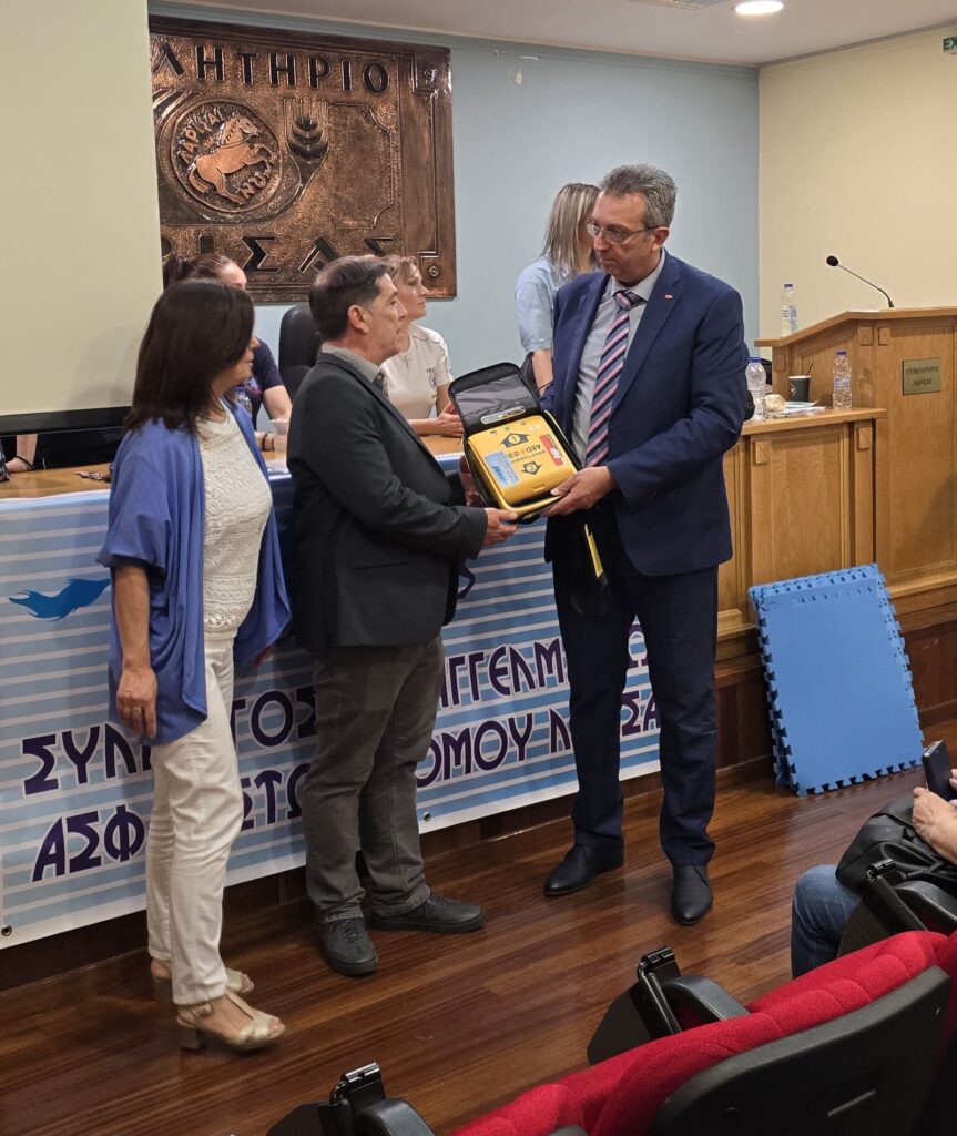 Μετά το πέρας του Σεμιναρίου δώρισε στον Δήμο Τεμπών έναν απινιδωτή που ήταν χορηγία της NP Ασφαλιστικής.