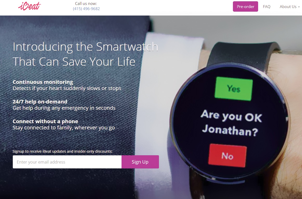Η startup ibeat με έδρα το San Fransisco δημιούργησε ένα ρολόι το οποίο μπορούν να χρησιμοποιήσουν όσοι θέλουν να ελέγχουν την καρδιά τους και όσοι αναρρώνουν από χειρουργεία και καρδιακά προβλήματα. Τι κάνει; Ανιχνεύει εάν ξαφνικά η καρδιακή λειτουργία του ανθρώπου που το φοράει επιταχυνθεί ή επιβραδυνθεί επικίνδυνα και βοηθά στο να ζητήσει ο ασθενής βοήθεια. Συνδέεται με κινητό και δίνει τη δυνατότητα σε συγγενείς ασθενών να μπορούν να έχουν άμεση ενημέρωση σε ενδεχόμενη επιδείνωση της υγείας τους. Επίσης, μπορεί ο χρήστης να έχει επαφή με ανθρώπους της οικογένειάς του όλη την ώρα.