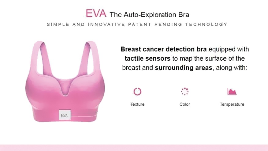 Ανιχνεύοντας τη θερμοκρασία και καταγράφοντας την ελαστικότητα των ιστών ο στηθόδεσμος EVA που κατασκευάστηκε από τη startup HIGIA μεταφέρει στοιχεία σε app στο κινητό και προειδοποιεί όταν ανιχνεύονται δεδομένα που πρέπει να ελεγχθούν.