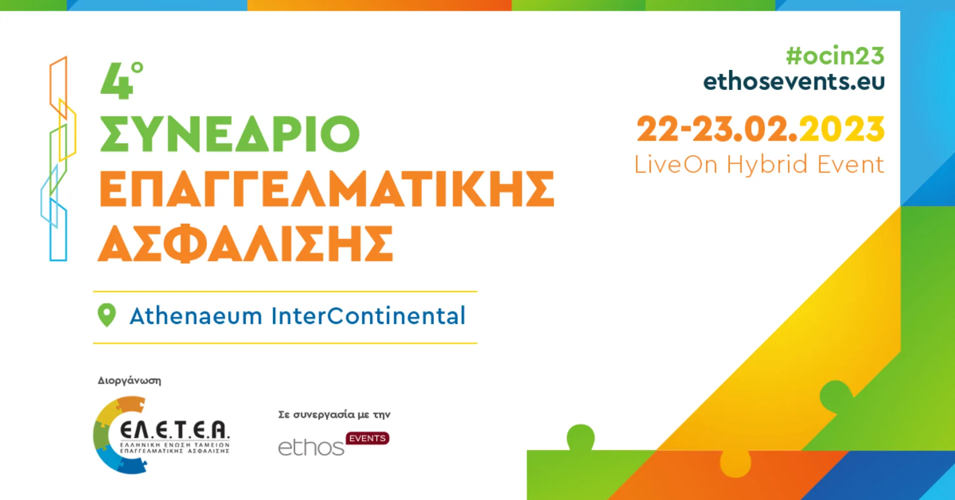 Το 4o Συνέδριο Επαγγελματικής Ασφάλισης #ocin23 διοργανώνεται από την Ελληνική Ένωση Ταμείων Επαγγελματικής Ασφάλισης (ΕΛ.Ε.Τ.Ε.Α.) με χορηγό επικοινωνίας το www.insurancedaily.gr