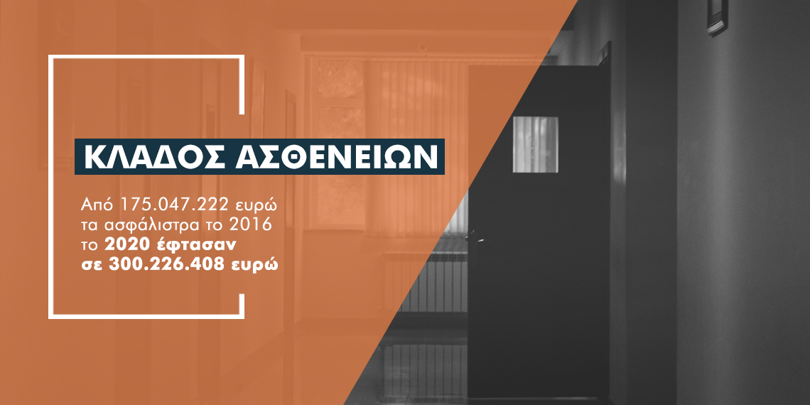 Μεγάλη αύξηση καταγράφουν τα ασφαλιστικά προγράμματα για την κάλυψη ασθενειών, καθώς από 175.047.222 ευρώ το 2016 το 2020 έφτασαν σε 300.226.408 ευρώ σημειώνοντας άνοδο της τάξεως του 70,7%.