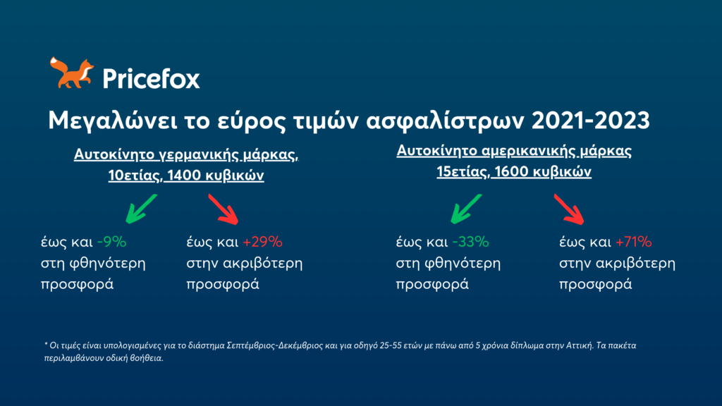 Το Pricefox, η πλατφόρμα σύγκρισης ασφαλειών αυτοκινήτου, ανέλυσε τις τιμές στα ασφάλιστρα αυτοκινήτου στην Αττική για το διάστημα 2021 με 2023 (Σεπτέμβριο με Δεκέμβριο του κάθε έτους) και ενημερώνει τους ιδιοκτήτες αυτοκινήτου σχετικά με τις αλλαγές, συμβουλεύοντάς τους για τα επόμενα βήματα.