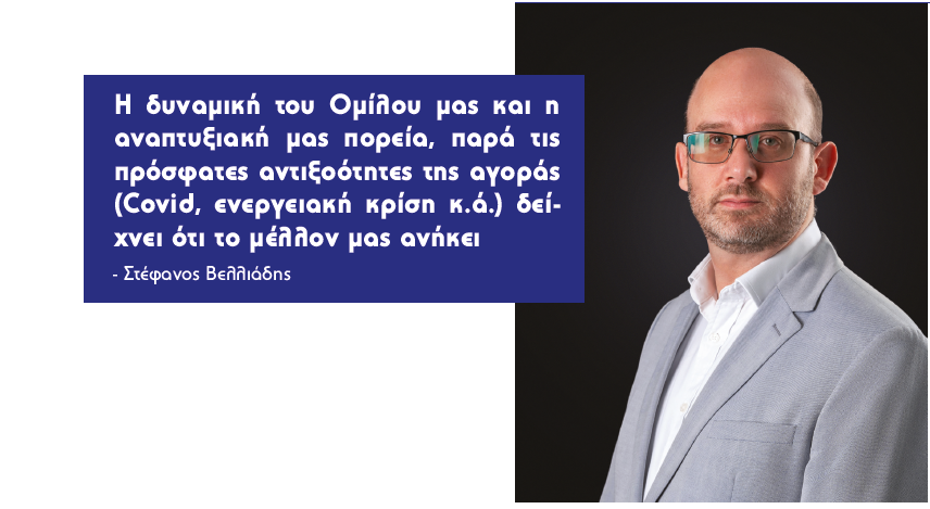 Απάντηση Στέφανος Βελλιάδης: Ομολογώ ότι είμαστε τυχεροί αφού η συνέπεια που έχουμε διδαχθεί από τον πατέρα μας και το επιχειρηματικό του έργο στο παρελθόν, αποτελεί τον οδηγό μας για το μέλλον του Ομίλου των εταιρειών μας. Παραλαμβάνουμε έναν Όμιλο εταιρειών που η οικονομική και διοικητική του υγείαείναι άριστη. Σε συνεργασία με τον κύριο Καλαμπαλίκη και την αξιόλογη Διοικητική Ομάδα, θέτουμε τις βάσεις για να αναπτυχθούμε σταθερά και προσηλωμένοι στο business development plan, με στόχο να πρωταγωνιστούμε στην Ασφαλιστική Διαμεσολάβηση τα επόμενα πολλά χρόνια. Η δυναμική του Ομίλου μας και η αναπτυξιακή μας πορεία, παρά τις πρόσφατες αντιξοότητες της αγοράς ( Covid, ενεργειακή κρίση κ.ά.) δείχνει ότι το μέλλον μας ανήκει.