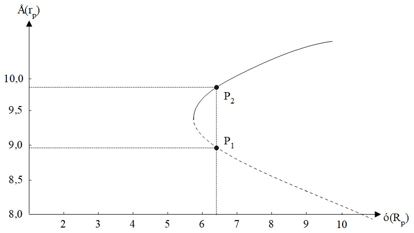 Η συνεχής καμπύλη (συνεχής γραμμή) δείχνει την αποτελεσματική περιοχή πάνω στην οποία βρίσκονται αποτελεσματικά χαρτοφυλάκια. Η διακεκομμένη καμπύλη έχει χαρτοφυλάκια που κυριαρχούνται από τα χαρτοφυλάκια της αποτελεσματικής περιοχής (για ένα ίδιο επίπεδο κινδύνου, τα χαρτοφυλάκια της αποτελεσματικής περιοχής έχουν μεγαλύτερη απόδοση). Το Σχήμα 4 παρουσιάζει καθαρά την ανωτερότητα του χαρτοφυλακίου P2 από το χαρτοφυλάκιο P1.