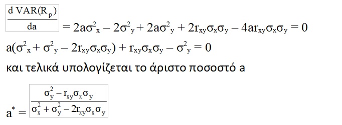 Η ελαχιστοποίηση της διακύμανσης του χαρτοφυλακίου πραγματοποιείται υπολογίζοντας την πρώτη παράγωγο που είναι ίση με μηδέν.