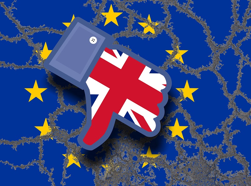 Symbol image to threat after the from David Cameron desired Referendum in UK to Remaining in the EU European n Union Eroding Flag the EU and Facebook dislike with Thumb after below and Union Jack