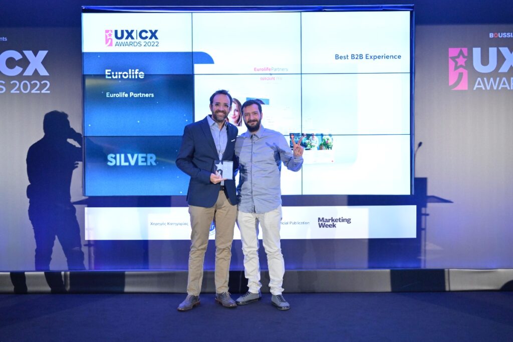 Για τη Eurolife FFH, αξία έχει να βρίσκεται πάντα στο πλευρό των ανθρώπων που την εμπιστεύονται, με προτάσεις και λύσεις που απαντούν στις ανάγκες του σύγχρονου τρόπου ζωής. Αναγνωρίζοντας τη σημασία του UX|CX και το ρόλο του στην ψηφιακή εμπειρία των χρηστών, η Eurolife FFH επενδύει με συνέπεια στην τεχνογνωσία των στελεχών της, προκειμένου ο σχεδιασμός και η υλοποίηση τέτοιου τύπου λύσεων να γίνεται απευθείας από τους ανθρώπους της εταιρείας. Στο πλαίσιο αυτό, σχεδίασε το Eurolife Partners, ένα online πολυεργαλείο που προσφέρει λύσεις στην ανάγκη του σύγχρονου επαγγελματία ασφαλιστικού διαμεσολαβητή να μπορεί να παρέχει ψηφιοποιημένες υπηρεσίες στους πελάτες του. Η πλατφόρμα που απέσπασε το Silver Award στην κατηγορία Best B2B Experience, σχεδιάστηκε και εξελίσσεται εξ ολοκλήρου εντός της Eurolife FFH και δίνει τη δυνατότητα στο σύγχρονο ασφαλιστή να παρακολουθεί το σύνολο της σχέσης με κάθε πελάτη του 100% online.