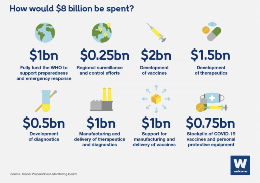 Σύμφωνα με το World Economic Forum που δημοσίευσε νέα μελέτη, προκειμένου σε σύντομο χρονικό διάστημα να δημιουργηθεί θεραπεία κατά του Covid-19 θα χρειαστούν περίπου €8 δισ. για την έρευνα, ανάπτυξη και προμήθεια στον κόσμο του νέου φαρμάκου.