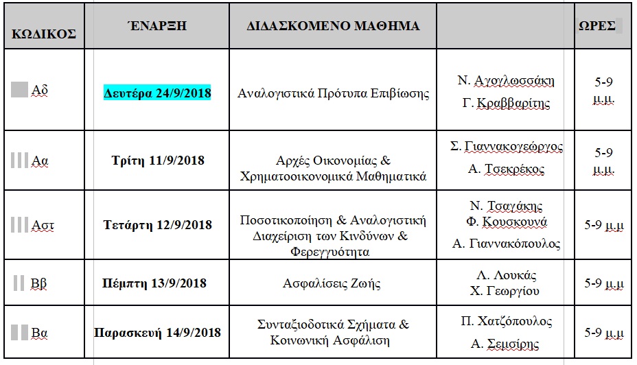 Τα μαθήματα πραγματοποιούνται στα Γραφεία της Ένωσης Αναλογιστών, Μητροπόλεως 5, 5ος όροφος, Σύνταγμα.