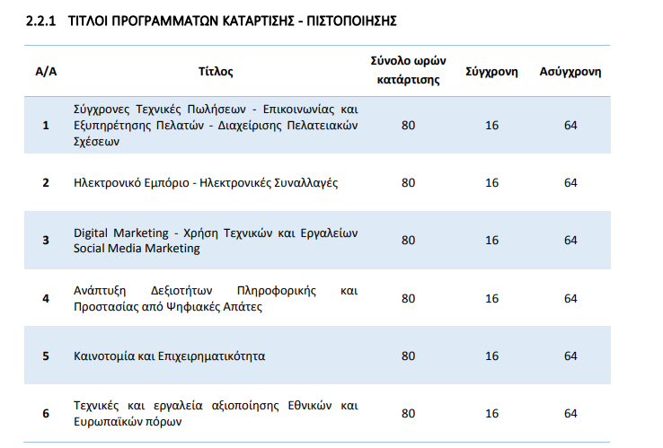 Η επιδότηση είναι 400 ευρώ για 80 ώρες εκπαίδευσης και μετά το πρόγραμμα ακολουθούν εξετάσεις και πιστοποίηση.
