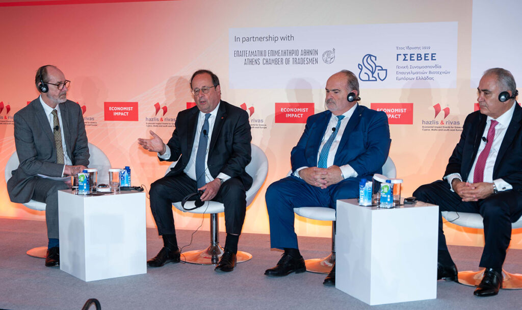Με εξαιρετική επιτυχία και πολύ υψηλή συμμετοχή πραγματοποιήθηκε, το Σάββατο 25 Μαΐου 2024, το 2ο Ευρωπαϊκό Συνέδριο Μικρομεσαίας Επιχειρηματικότητας που συνδιοργάνωσαν το Επαγγελματικό Επιμελητήριο Αθηνών, η ΓΣΕΒΕΕ και ο Economist, με κεντρικό ομιλητή τον πρώην Πρόεδρο της Γαλλίας Φρανσουά Ολάντ.