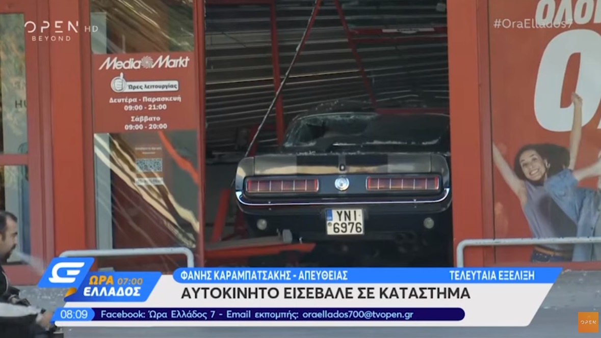 Σε κατάστημα ηλεκτρικών ειδών στην Πέτρου Ράλλη εισέβαλαν ληστές αφού πρώτα έπεσαν πάνω στα κιγκλιδώματα της εισόδου με μία Mustang δεκαετίας του 1967, που είχαν κλέψει.
