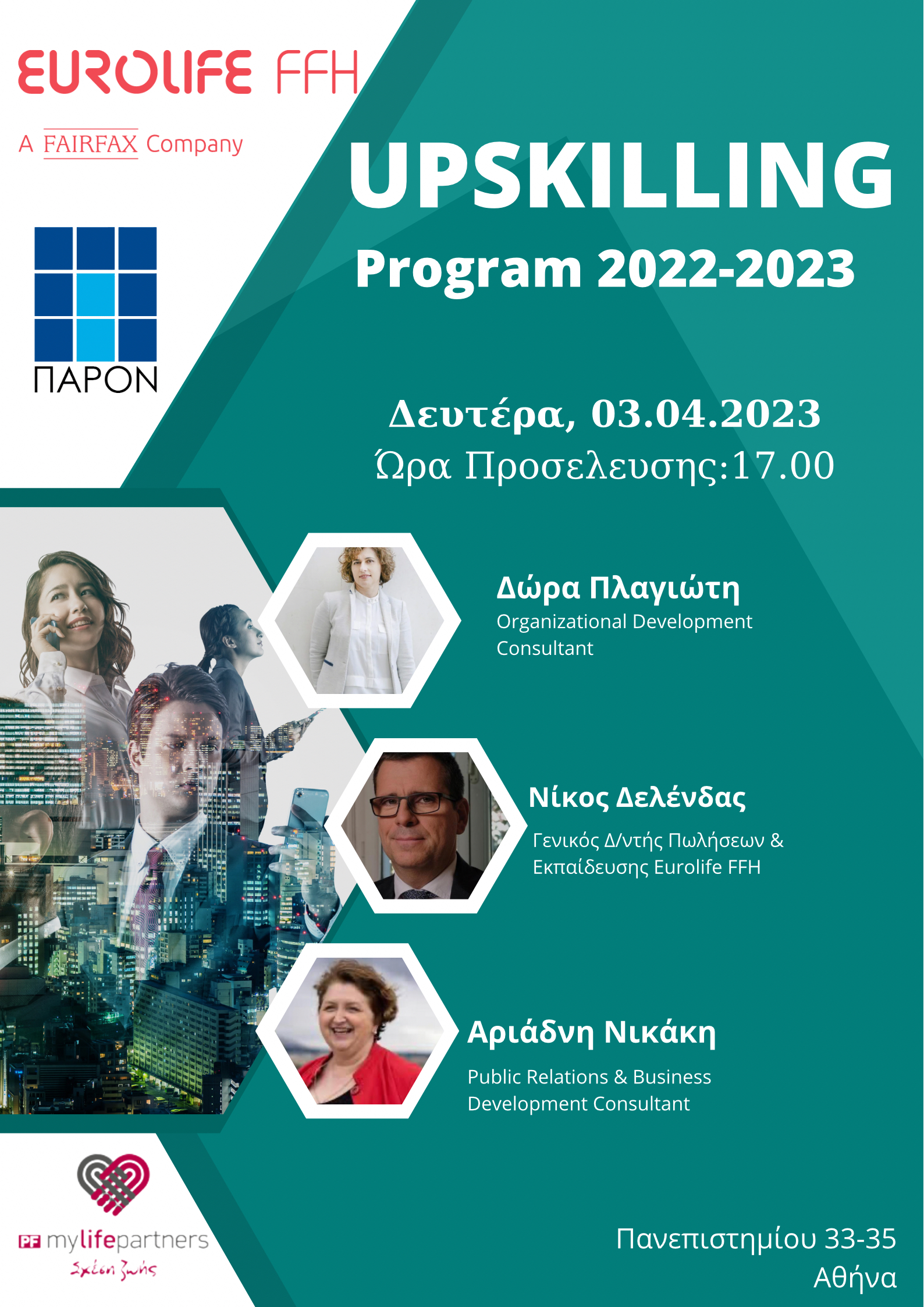 Θερμά συγχαρητήρια τόσο στην My Life Partners όσο και στο ΠΑΡΟΝ για την πρωτοβουλία, αλλά και στην Eurolife FFH που υποστήριξε την υλοποίηση του προγράμματος Upskilling™.»