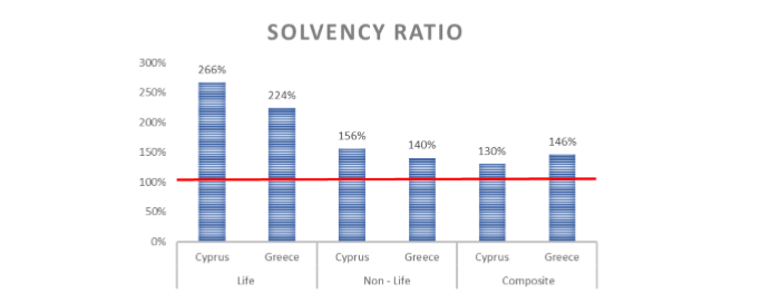 Ο δείκτης φερεγγυότητας της μέσης κυπριακής και ελληνικής ασφαλιστικής εταιρείας με βάση τον κλάδο δραστηριοποίησής της είναι ο εξής: